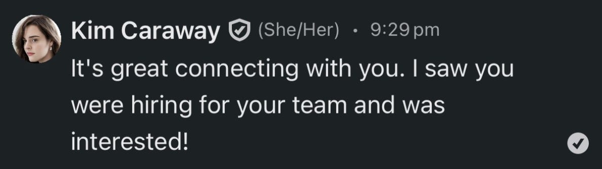 She sent a connection request to the hiring manager at Shopifyâsimple and direct. It felt like a long shot, but what did she have to lose?